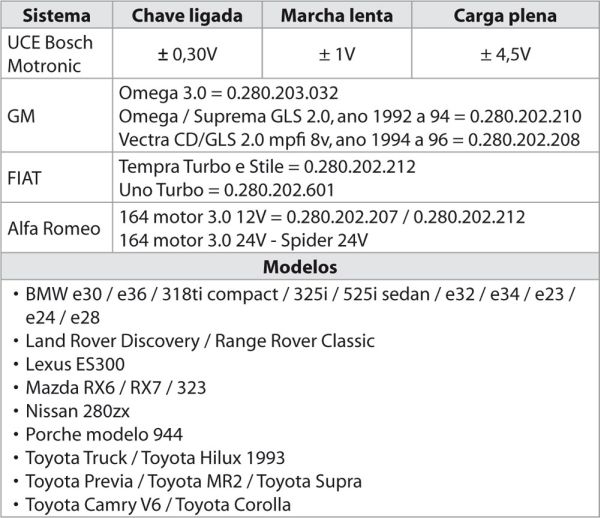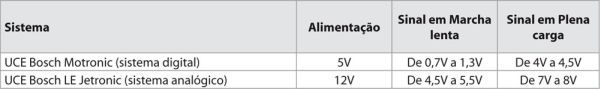 A UCE alimenta o sensor, durante o seu funcionamento, normalmente com uma tensão de 5V.