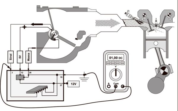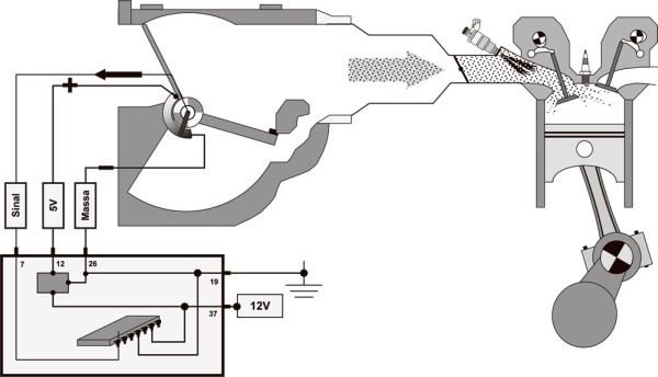 Esta vazão de ar depende do diâmetro do canal de entrada de ar, que está calibrado na memória da central eletrônica de controle de combustível do motor.