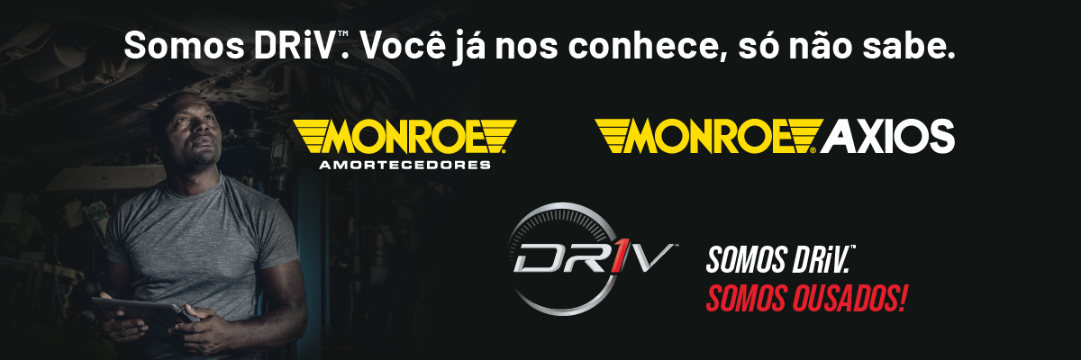 DRiV é uma empresa focada no mercado de reposição, com um portfólio completo para todas as necessidades do seu veículo, de ponta a ponta. Monroe Amortecedores e Monroe Axios são nossas marcas mais conhecidas no Brasil.