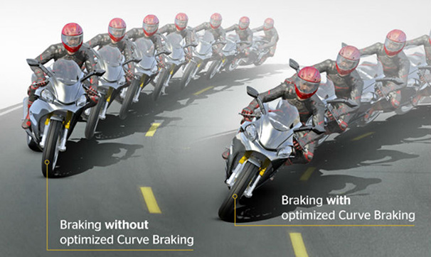 Um sistema de freios ABS para motocicletas com atuação optimizada em curvas é o novo lançamento da Continental. A principal novidade do sistema é o fato que ele mantém a motocicleta estável na sua trajetória caso seja necessário frear durante a curva. Para isto, ele monitora a velocidade de rotação das rodas, a velocidade, a aceleração lateral e o ângulo de inclinação cerca de 100 vezes por segundo para manter a estabilidade de moto durante uma frenagem em curva.