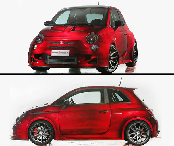 A preparadora italiana Romeo Ferraris, localizada em Milano, fez um Fiat 500 que esbanja esportividade. Por fora, os destaques ficam por conta dos para-lamas alargados, para-choques redesenhados, rodas de alumínio de 18 polegadas e escape redimensionado.
