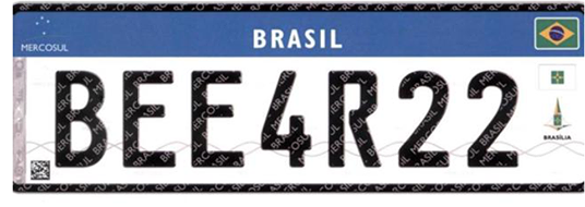 A categoria dos veículos será indicada pela cor da combinação alfanumérica: particular (preta), comercial/aprendizagem (vermelha), oficial (azul), experiência (verde), diplomático (dourado) e colecionador (prateado). Será utilizado um filme na cor da categoria dos veículos com inscrições de segurança.
