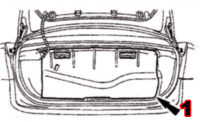 2. Remova os retentores; de quatro pinos e a cobertura dianteira do porta-malas. (Veja a figura 1)
