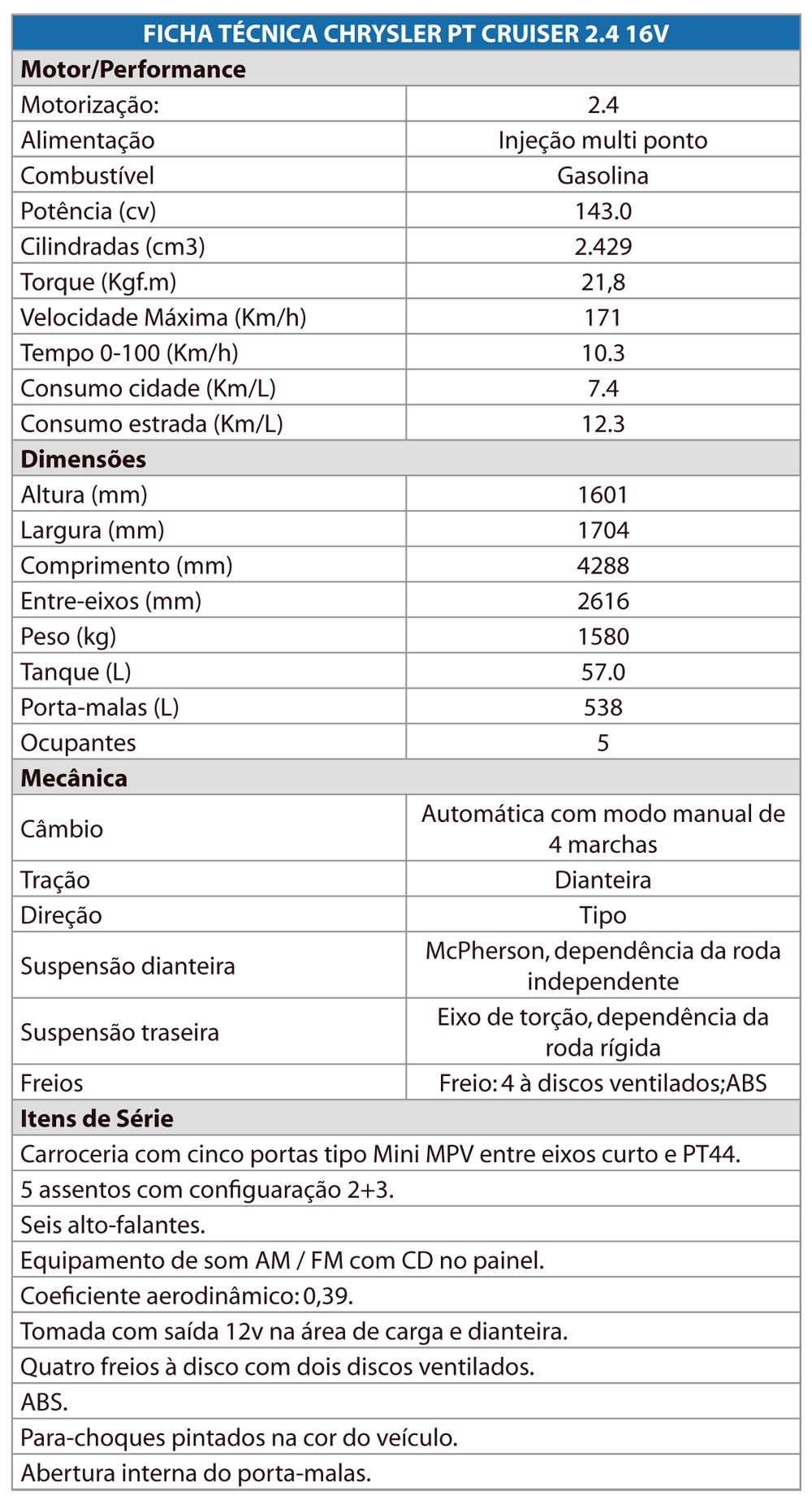Dessa forma, avaliamos um exemplar do PT Cruiser ano 2009 com motor 2.4 16V de 143cv, o qual estava com 33.256km rodados. (Foto 1)