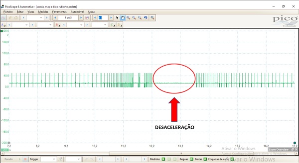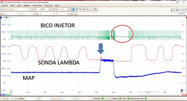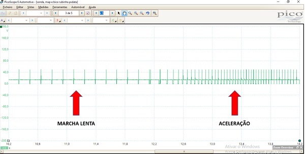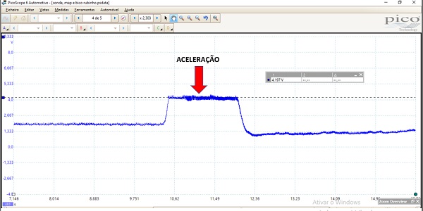 Na imagem é possível verificar o sinal do bico injetor durante uma aceleração.