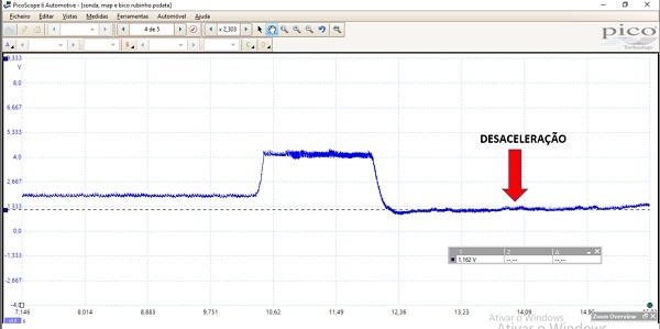 No momento da desaceleração temos a diminuição da pressão no coletor de admissão assim, o nível de tensão do sensor de pressão diminuirá.