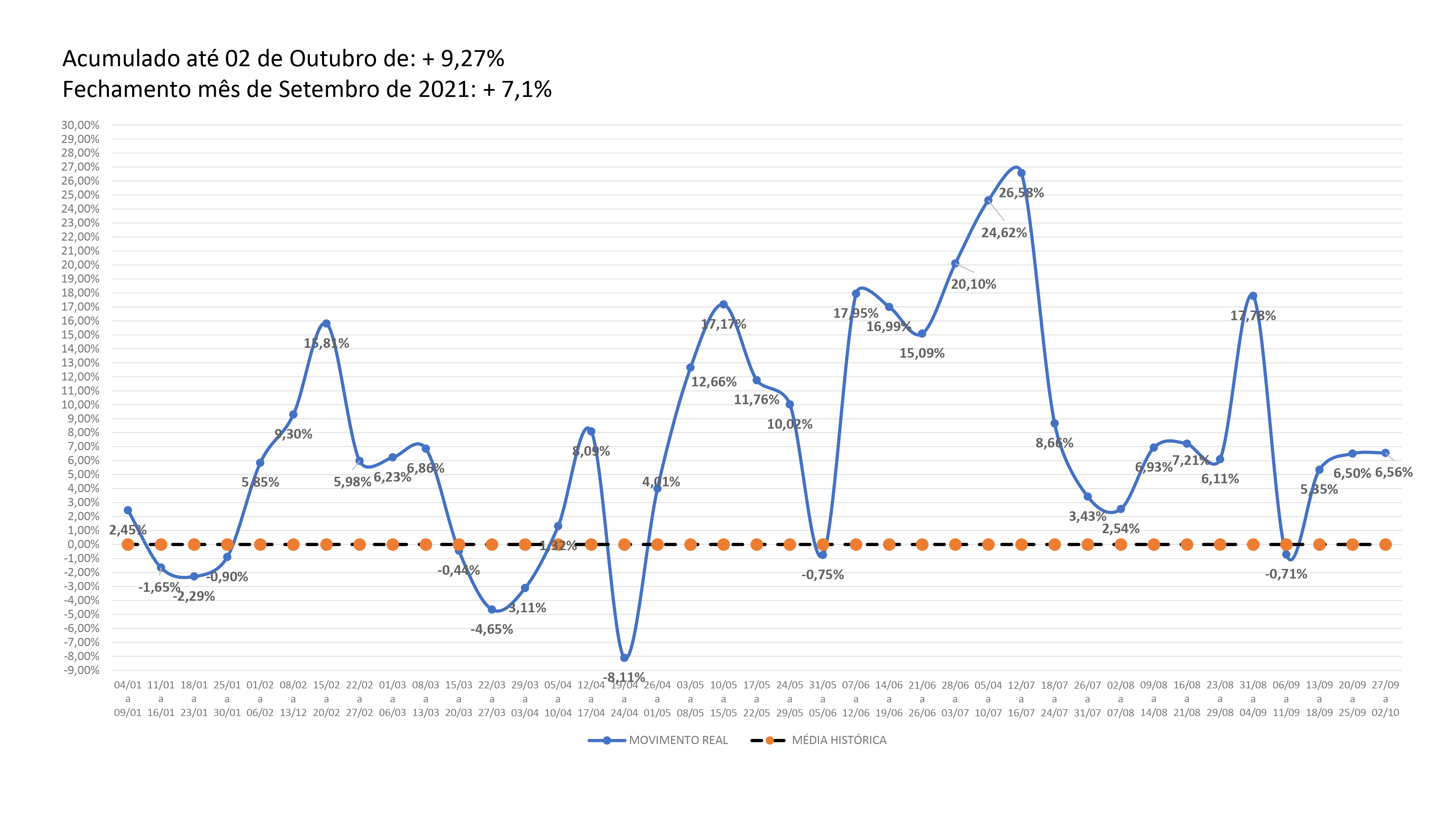 O que chama nossa atenção é que este indicador (confira no gráfico abaixo) apresentou quatro quedas seguidas nas medições periódicas, o que nos fez prever que o pior já havia passado e o mercado caminhava, ainda que lentamente, para uma normalização de abastecimento.