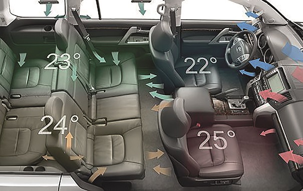 Existem controles separados para o motorista, passageiro da frente e o banco traseiro são divididos em dois com controles separados para cada metade, permitindo que quatro passageiros desfrutem de suas próprias configurações de controle climático. Se houver cinco passageiros no veículo, a pessoa sentada no meio do banco traseiro desfrutará de uma mistura das configurações traseira esquerda e direita.