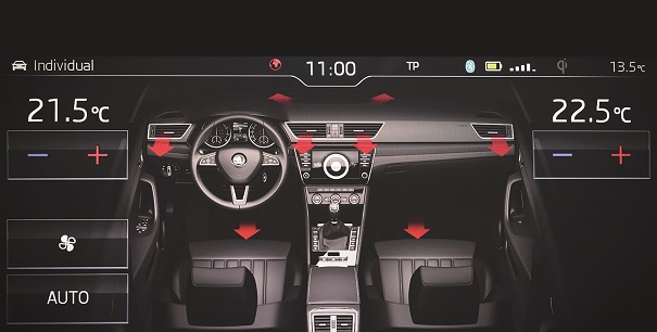 Ajuste de temperatura individual para cada zona do veículo: Agora é possível para cada passageiro gerenciar individualmente a temperatura e o fluxo de ar em sua própria zona. Os sistemas cortam o fluxo de ar quando uma zona está desocupada, enquanto aumentam a recirculação do ar para melhorar o conforto local, reciclando o ar já aquecido ou resfriado na cabine, leva menos tempo para que a temperatura necessária seja atingida, evitando assim o consumo excessivo de energia.