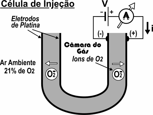Assim como uma diferença de concentração de O2, entre o ar ambiente e os gases de escape, produz uma tensão entre os eletrodos da célula, uma tensão aplicada, provoca o transporte (injeção) de íons de oxigênio entre os mesmos, gerando uma corrente elétrica. O sentido dessa corrente depende da polaridade da tensão aplicada.