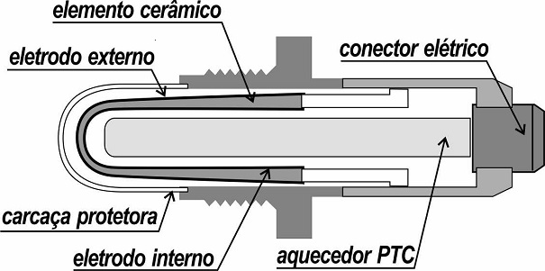 - De 3 fios: 2 fios para alimentação do aquecedor; 1 fio para o sinal; o retorno do sinal é feito através do chassi.